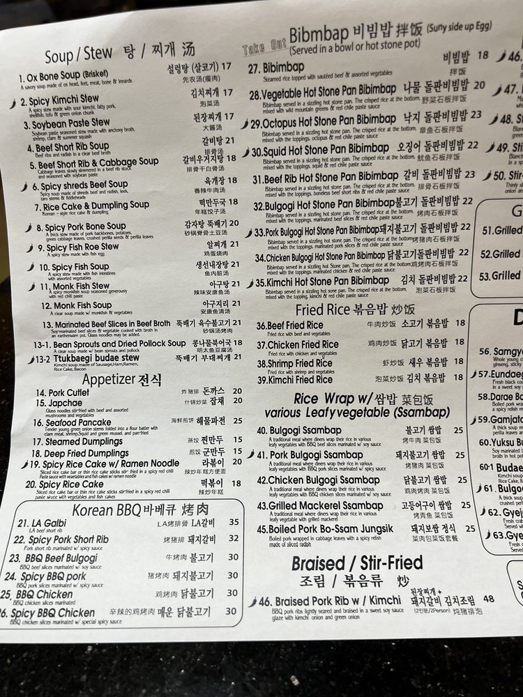 “ This place has been in my radar, I finally visited with my family. At first sight, looks very small, and maybe even questionable, but.. you know what they say, never judge a book by its cover. Located in a semi hidden location surrounded by larger businesses and Target, easily could be missed. There is plenty of parking in front and in the surrounding area. I read plenty of reviews about the bad costumer service, we did not experience that at all. We were seated, greeted and give menus almost immediately. Came in as a large party and we were treated like everyone else. The food was good, it came our pipping hot and freshly made. My favorite Korean dish is Bibimbap, very simple nothing crazy but the crispy rice is my absolute favorite. My food was so hot that I had to wait a few minutes to eat, which was perfect because I was able to try all the fixing first. I then was too excited that it cooled I forgot to take a picture before eating.. ha. Overall we all had a great experience and enjoyed coming here. ”